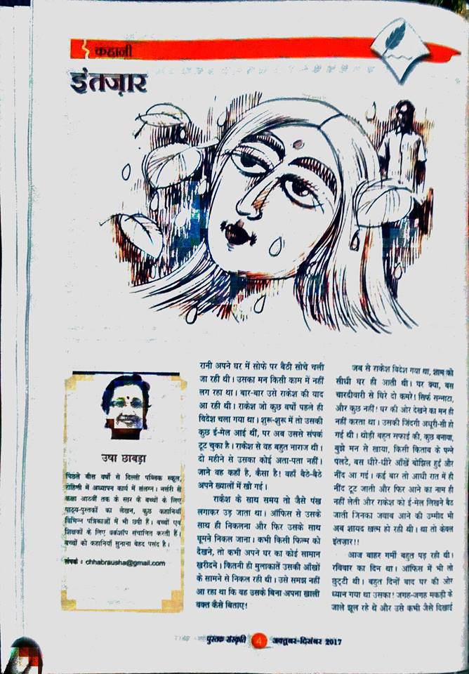 11 Nov In Uncategorized 0 comment Happy to share that my story got published in the esteemed magazine PUSTAK SANSKRITI published by National Book Trust . Share: Usha Chhabra You may also like कुछ ख़ास था इस बार August 1, 2022 by Usha Chhabra in Uncategorized कुछ ख़ास था इस बार अपनी बात कहूँ, तो हिंदी भाषा में बच्चों की रुचि जागृत करने के लिए कई कार्यक्रम चलाए जा रहे हैं। April 26, 2021 Come to Gurgaon today to celebrate the stories that help us unite and celebrate UNITY April 14, 2019 Teachers’ Training At Khaitan Public School April 7, 2019