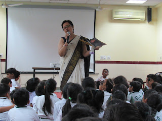Storytelling cum workshop on waste and its management was conducted for children of classes II and III on the occasion of World Literacy Day. The stories कचरे का बादल by Pratham books and मोत्ताइनाइ दादी माँ by NBT were narrated. A video showing the menace of Plastic was also shown. Children were motivated to reuse things and reduce waste.